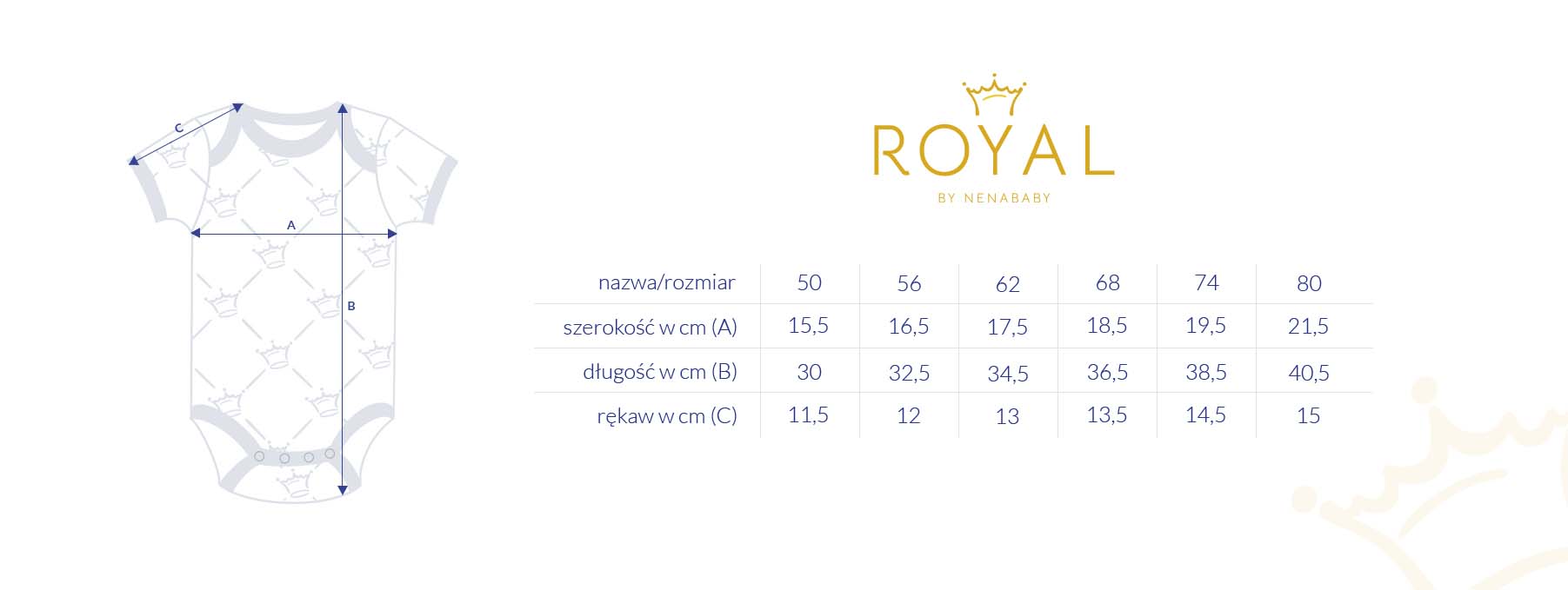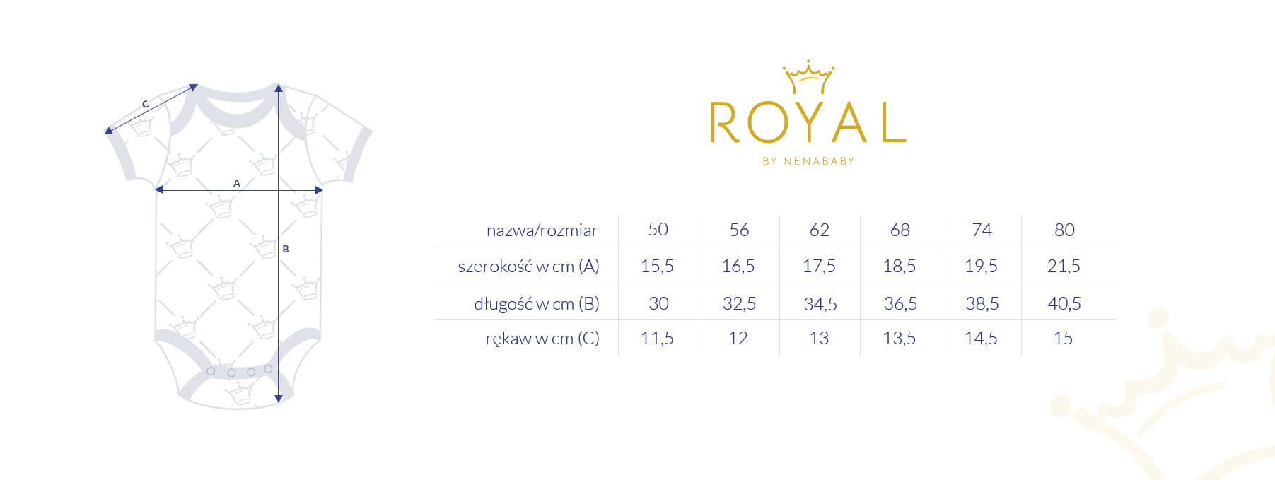Ein unverzichtbarer Bestandteil der Garderobe eines jeden Kindes. Ideal für warme Tage, aber auch als zusätzliche Schicht für das kalte Winterwetter. Wir haben unseren Body mit einem Kronenmuster verziert, das ihm einen einzigartigen, eleganten Charakter verleiht. Es ist in zwei Farben erhältlich: blau und rosa. Wir haben den Body so genäht, dass das Wickeln des Babys sowohl für das Baby als auch für die Pflegeperson einfach und angenehm ist. Wir haben auch die Falten im Rücken nicht vergessen - die Windel passt sich leicht an, ohne die Bewegungsfreiheit einzuschränken, und sorgt für Komfort.